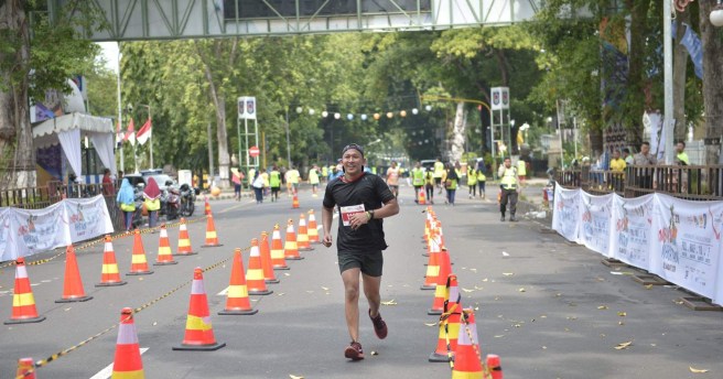 KM 33-37 menurut saya adalah jarak-jarak paling berbahaya buat saya. Capek badan dan capek pikiran. Kepala panas, keringet udah nggak kerasa lagi, lutut loyo, dan kebayang finish line masih sepuluh kilo lagi. Saya selalu marah-marah pada diri sendiri, “Ngapain sih ngoyo amat lari 42 kilo? Ngapain sih mau tersiksa kayak gini? Mending ikut Half Marathon aja. Jam segini udah pada finish tuh, udah pada leyeh-leyeh, atau udah balik ke hotel buat tidur.”