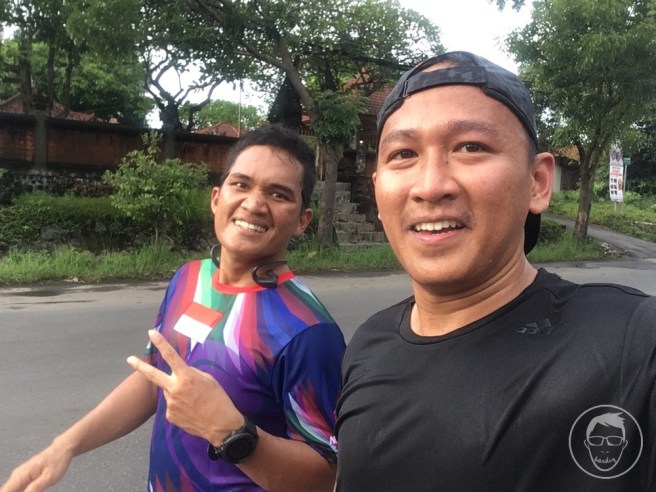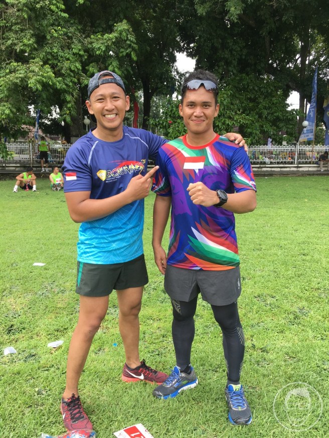 Kalo ada yang saya bilang sukses dari Lombok Marathon 2017, itu karena saya berhasil finish di bawah 5 jam. Berkat pacer saya ini, Yohanes Tampubolon.