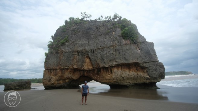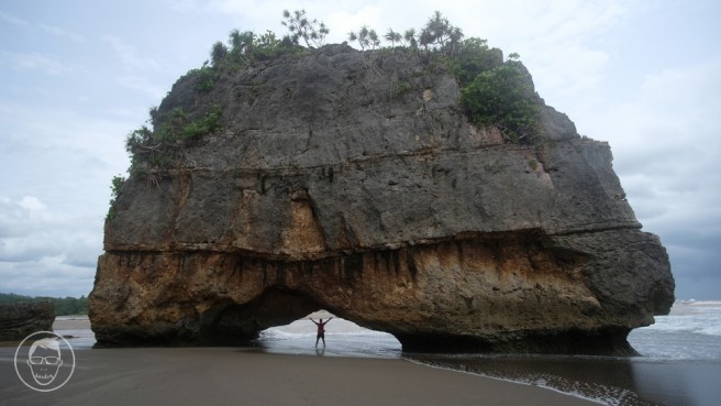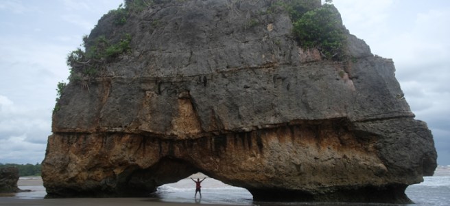 Apa yang menarik di Pantai ini? Adalah batu karang yang menurut saya berbentuk kayak kura-kura, dengan tempurungnya yang menjung lancip, dan ada rongga di dasarnya karena terkikis oleh air laut.
