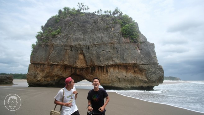 Nggak jauh dari tempat kami memarkirkan mobil, batu-batu besar khas Pantai Watu Maladong sudah bisa kita lihat dari beberapa titik. Di sini, di pantai ini telah terukir sejuta kenangan, terdapat muara sungai besar yang ada buayanya. Buaya air dan juga buaya darat. So please be careful, jangan sampai tertipu rayuannya.