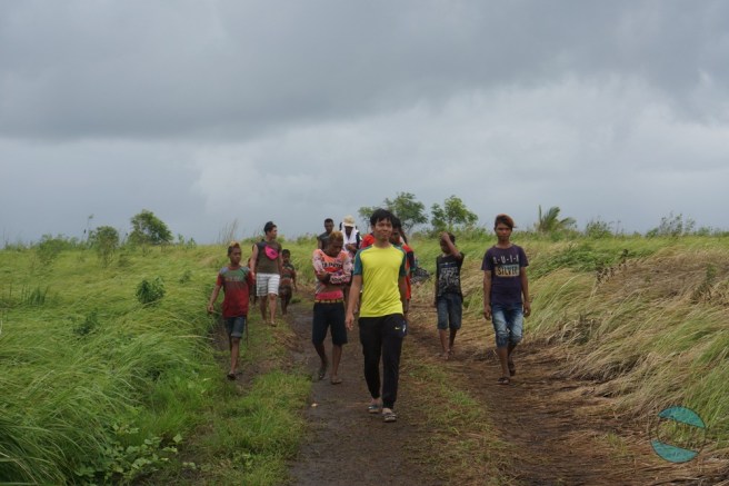 Tiga mobil rombongan kami sudah ngumpul. Helmi, Pak Sarmin, Pak Rais, dan driver mobil satu lagi yang saya nggak tau namanya ngobrol dengan sekumpulan warga ini. Mungkin minta ijin agar kami bisa mengunjungi daerah mereka. Beberapa menit setelah itu, kami memulai perjalanan. Dan dikawal segini banyak orang.