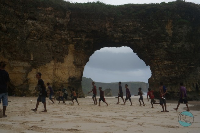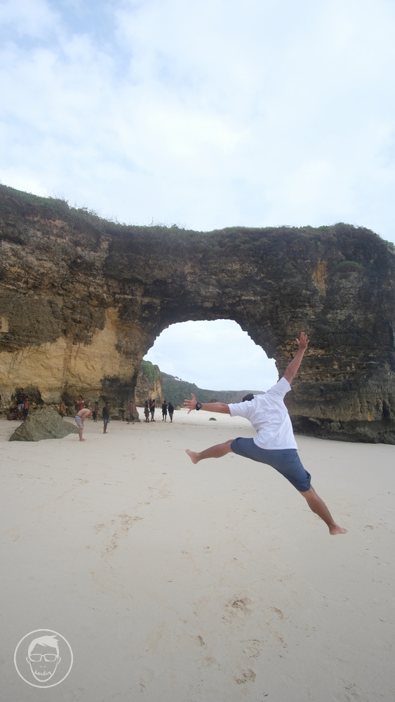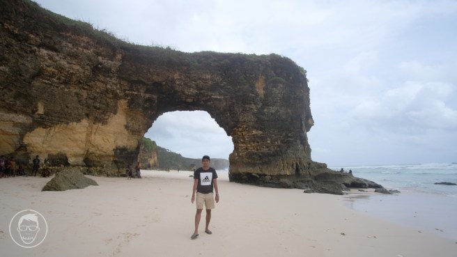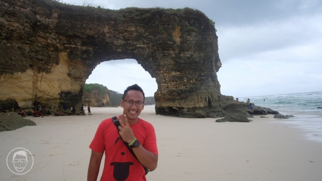 Yang menarik dari pantai ini adalah karang yang bolong sehingga membentuk seperti terowongan.