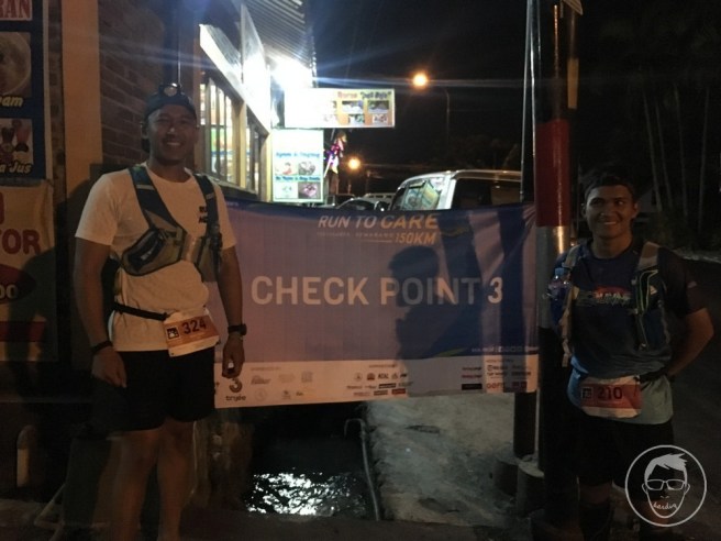 Jam setengah sembilan kurang Yonky sampai di CP 3, alhamdulillah sehat sehat aja. Karena saya udah ready, barang barang yang nggak saya perlukan udah saya masukin ke baggage drop ke panitia. Jam 8.45, setelah lapor ke panitia yang nyatetin keluar masuknya pelari, dipakein gelang penanda CP 3, saya memulai perlarian saya, sekaligus mengakhiri perjuangan team saya sampai ke garis finish.