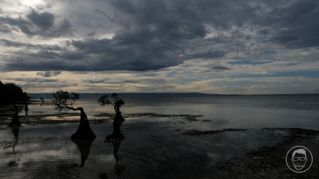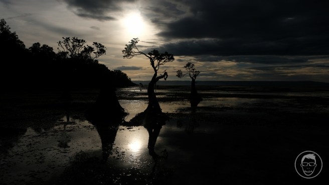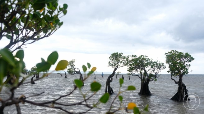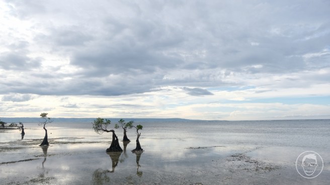 Ketika mulai surut, permukaan air luat yang terjebak akan tenang. Kamu bakal bisa melihat refleksi dari pohon pohon yang menari ini di atas permukaan laut.