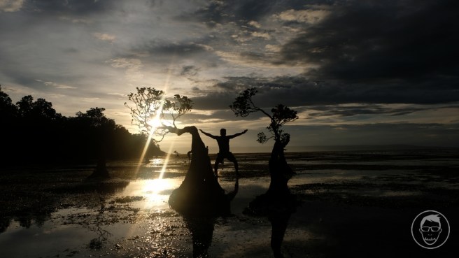 Apa yang spesial dari pantai Walakiri? Sampe sampe ketika menjelang sunset ramenya kebangeten. Padahal kami sedang berkunjung di low season loh, musim hujan. Yang paling menarik para turis ini adalah sekumpulan pohon bakau yang meliuk liuk seolah sedang menari. Bukan itu aja, garis pantainya menjorok jauh ke laut, jadi beberapa puluh meter dari tepi pantai, kami masih bisa berjalan kaki dan tingginya paling sampai sebetis. Tapi hati hati ya, jangan terlalu jauh, siapa tahu langsung jurang dalam, jatuh lah kau tenggelam di laut sana. Hati hati kau makanya ya.