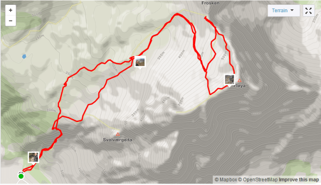 Di sini, di sebelah timur kita bisa melihat puncak Svolværgeita. Gunung yang terkenal di Svolvær untuk rock climbing. Katanya tidak memerlukan high fitness level untuk climbing di Svolværgeita, newbie yang belum pernah sama sekali untuk rock climbing pun boleh menjajal untuk mendaki Svolværgeita. Karena bakal dilengkapi dengan gear yang sangat safety, bahkan snack dan food, dan juga ditemani oleh experienced instructor. Jadi sangat dijamin aman. Kalo kamu minat, bisa meluangkan waktu sekitar 3-4 jam untuk mendaki Svolværgeita. Gratis? Nggak dong. Biayanya untuk satu orang adalah 4,000 NOK atau kalo diRupiahin sekitar 7.5 juta. Ulala.. Kalo dua atau tiga orang, bayarnya turun jadi 2,000 NOK per orang. Piye piye? Hiking ke Mount Fløya aja yang gratis kayak saya kuy.