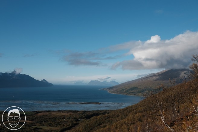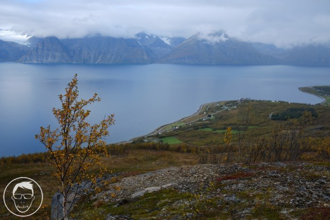 Kami hampir nggak bisa lihat apa apa di puncak Storhaugen, tapi perjalanan selama menuju Storhaugen, kita ditemani pemandangan luar biasa cantik dari Lyngenfjord yang berpadu dengan Lyngen Alps di seberang.