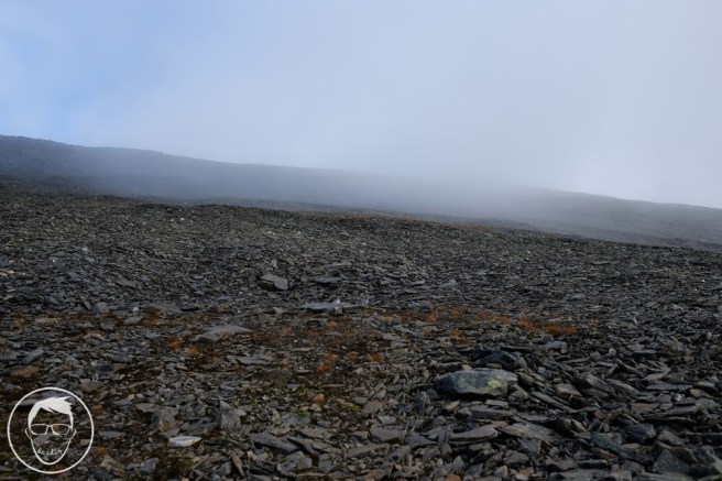 Nah, dari Dalberget sampai Storhaugen, rute dari Tor Henning’s Special Route ataupun dari usual route dari dekat Lyngen Lodge, menjadi satu. Dan ada rutenya berupa garis putus putus kalo dilihat dari maps.me. Track dari Dalberget menuju Storhaugen didominasi dengan track batu batu lumayan licin yang sebagian tertutup rumput. Ketemu juga track tanah tapi nggak begitu banyak.