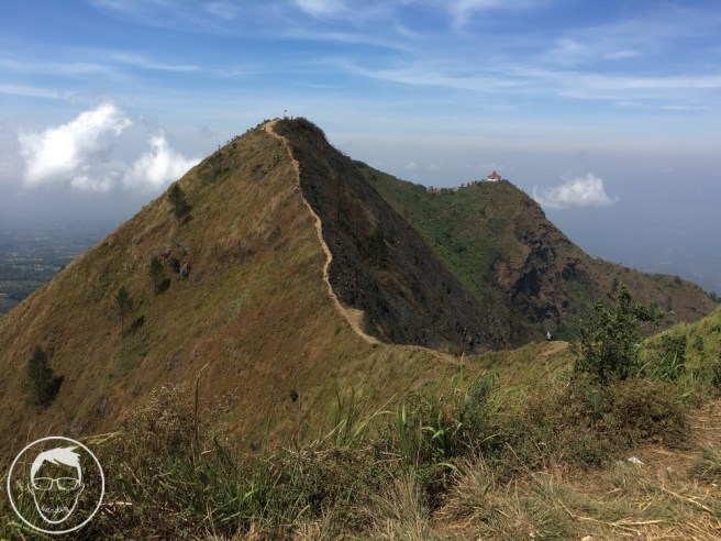 Karena naik dari Kudusan, saya sampai di Puncak Alap Alap. Jadi, ada empat puncak di Gunung Andong. Saya kurang halap sih, dan CP 1 di dekat Puncak Utamanya, yang ada tiang benderanya. Untuk ke Tugu Puncak, saya harus ngelewatin jalan setapak yang terkenal, orang orang menyebutnya Jembatan Setan.