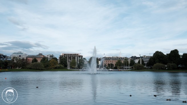 Tujuan pertama kami adalah ke store Telia di Bergen Storsenter, yang bisa kami jangkau dengan jalan kaki. Tapi karena masih jam 8 lebih dan store Telia masih belum buka, sambil berjalan menuju Storsenter, kami sempet mampir juga di sebuah kolam luas di tengah kota.