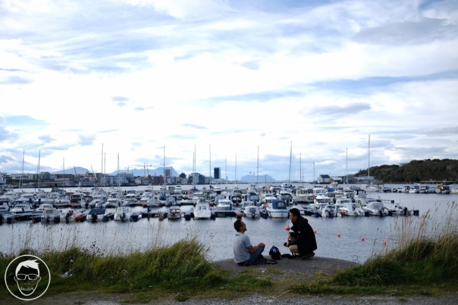 Masih setengah perjalanan dan kami memutuskan untuk istirahat dulu dan nikmatin pemandangan di depan mata kami. Kami duduk-duduk di belakang pergudangan, sebuah halaman luas di tepi Rønvikleira. A little fact about Rønvikleira from google: Rønvikleira tempat kami nongkrong adalah kawasan industry di Bodø yang dulunya adalah Rønvik fjord, dan disulap dengan menimbun fjord untuk dijadikan kawasan industry.
