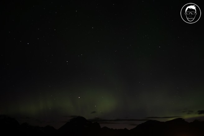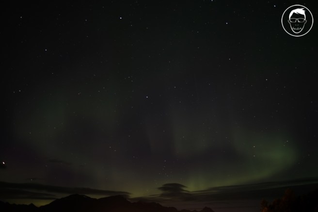 Saya atur tripod sampai tegak setengah badan, saya setting kamera saya: All manual settings, apperture paling kecil, focus infinity, ISO 100-200, dan Shutter Speed 10 detik. Saat saya arahkan ke langit, cahaya hijau yang tadi memanjang dari balik gunung kini semakin lebar, bahkan dari ujung Lyngen Alps, berkelok-kelok dia sambil bergerak-gerak perlahan. Dari sebelah kiri saya, muncul dengan sedikit warna ungu, menggores langit malam Djupvik. Saya memandang lama ke arah langit gelap dengan jutaan bintang, Northern Lights muncul dari segala penjuru, bergerak perlahan.