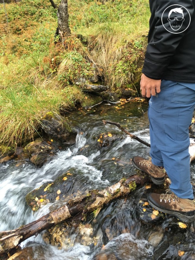 Ada gerbang sebelum meninggalkan lahan rumah Tor Henning, lalu nyeberangin sungai dengan jembatan seadanya. Masih ada track yang mulai tertutup rerumputan, dan kami mencoba terus naik sambil mencari-cari sisa track di depan kami.