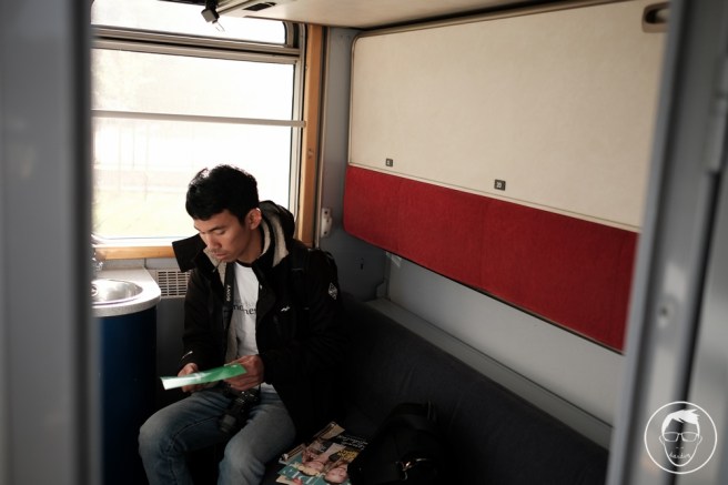 Lima menit kami habiskan untuk mencari gerbong dan compartment kami. Penumpang pun nggak terlalu ramai. Karena compartment kami berisi tiga orang, dan awalnya kami masih kepikiran bakal digabung dengan penumpang lain, kami masih malu-malu sok rapih menata ransel-ransel besar kami di space khusus yang sudah disediakan di atas pintu dan jendela.