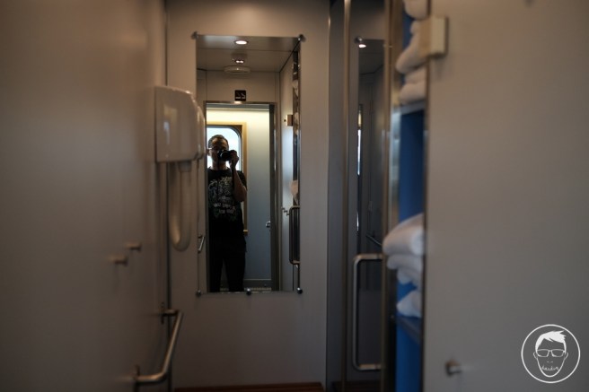 Untuk berth yang enam bunk bed dalam satu compartment dan berth yang tiga bed dalam satu compartment, WC dan shower disediakan di ujung koridor. Jadi shared gitu, sedangkan yang First Class private WC dan shower sudah dilengkapi di dalem compartment. Untuk First Class selain fasilitas compartment yang super nyaman, disediakan breakfast juga! Apa nggak manteb banget tuh? Yah, ono rego ono rupo. Untuk pilihan compartmentnya bisa milih mau yang cowok semua, cewek semua, atau mixed.
