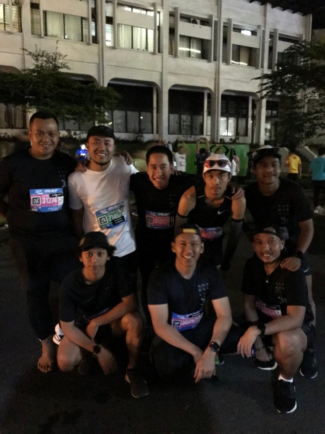 Introducing my running buddies: mi familia de Medan, runmdn! Temen-temen dari runmdn kali ini datang paling banyak malah yang sekarang kerja/kuliah di Jakarta dan Bandung. Yang langsung dateng dari Medan ada lima orang, yang dari Jakarta ada 6 orang. Saya sendiri dateng dari Semarang. Dari 14 orang total, yang lari cuma 9 orang, lainnya ikut cheering! Because when you can’t run, you cheer!