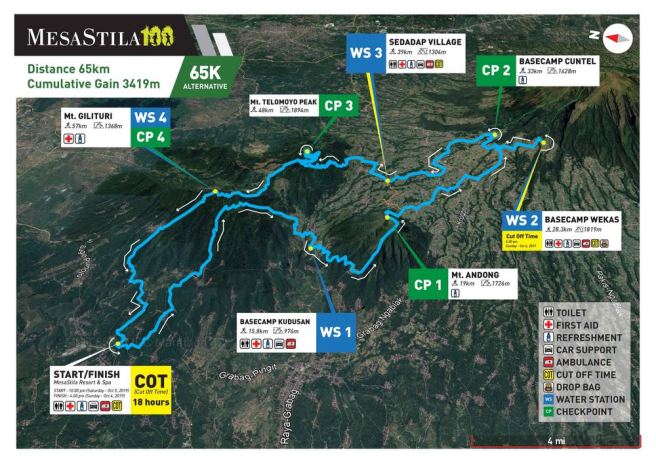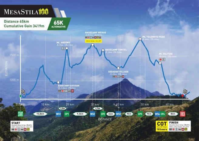 Jadi beginilah map elevasi dan rute MesaStila 100 kategori 65K dengan alternative route: