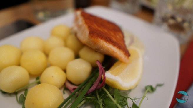 Selain Köttbullar, kami memesan Fried Salmon. Wait, menunya sebenernya nggak sependek ini, tapi panjaaaang dengan bahasa Swedish. Ini barusan saya iseng googling dan nemu dua menu yang kami pesan. Udah siap kecetit lidahmu wak?