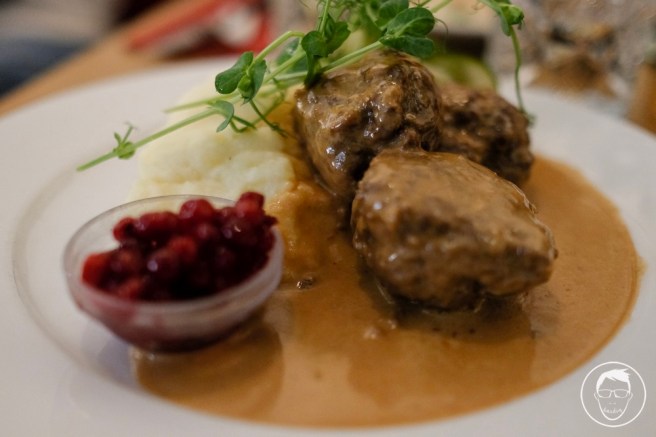Setelah membandingkan banyak referensi local food dari Tripadvisor dan tentu juga saran dari Svante. Kami memutuskan untuk mencoba Köttbullar alias bakso! Köttbullar atau biasanya di Indonesia dipanggil Swedish Meatball. Bakso daging ditemani dengan mashed potato, dituang brown sauce dan ditemani dengan lingonberry sauce. Atau kadang orang-orang sering bilang Bakso IKEA. Biasanya lengkap dengan bendera Sweden kecil di atasnya. Saya belum pernah makan Bakso IKEA, jadi mari kita ngicip langsung di negara asalnya.